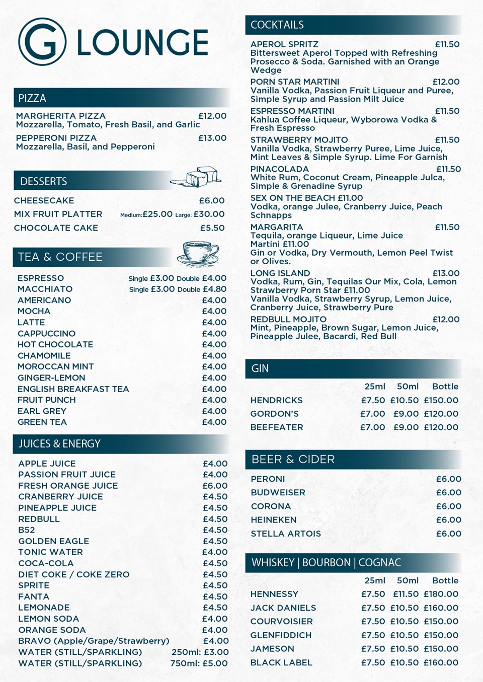 Step into G Lounge, Walthamstow's premier destination for an unforgettable shisha and dining experience. Whether you're winding down after a long day or kicking off your night with friends, our cozy and stylish atmosphere is perfect for any occasion.